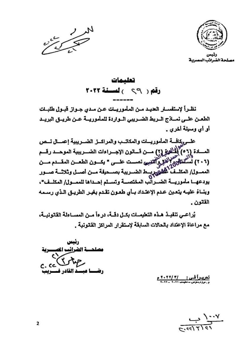 رد: حمل نموذج وورد لصحيفة طعن وفقا لقانون الإجراءات الضريبية الموحد