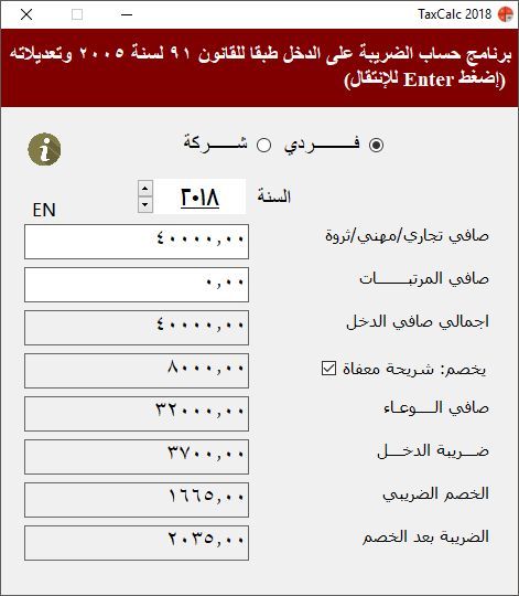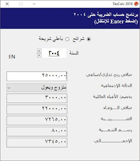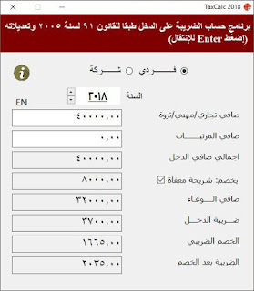 يدعم البرنامج حساب الضريبة على ارباح النشاط التجاري والصناعي والأنشطة المهنية والثروة العقارية والضريبة على المرتبات